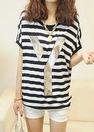 4. 宽松条纹:宽松的条纹短袖舒适自在,适合休闲时刻穿着。搭配一双帆布鞋,展现你的随性风格。